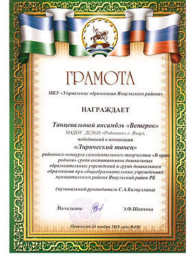 20 ноября 2018г. в детском саду "Дельфин" г.Янаул прошел районный конкурс «В краю родном», посвященный 100-летию Республики Башкортостан.Вокальные способности продемонстрировал ансамбль "Чишмэкэй", спев заводную песню Р. Тухватуллина "Тукта, янгыр" (зрители и жюри были просто влюблены в наш ансамбль ) . И заняли почетное 2 место. Хореографический ансамбль девочек "Ветерок" со средней и старше-подготовительной групп представили удмуртский народный танец с колокольчиками. Они стали победителями в номинации "Лирический танец". Это для нас большая победа!